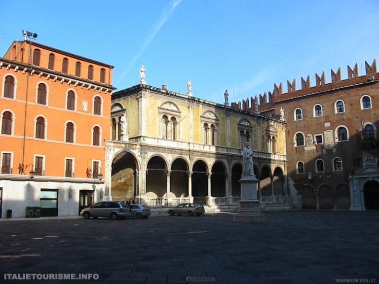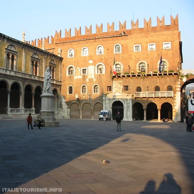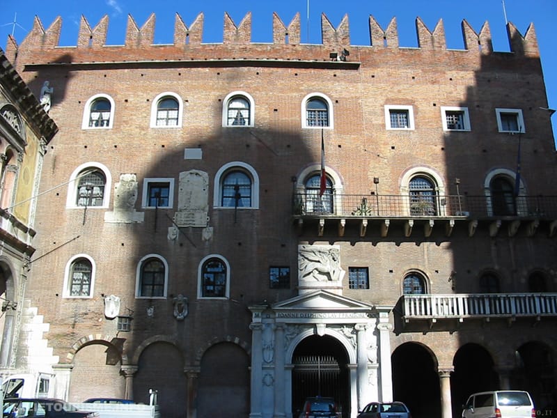 Le palais a été construit par les Scaligeri (Della Scala), au-dessus de ruines romaines (il est situé à proximité du forum romain, aujourd’hui Piazza delle Erbe), et a été habité à la fin de la construction par Alberto Ier della Scala. Il servait probablement de résidence aux seigneurs de la ville.